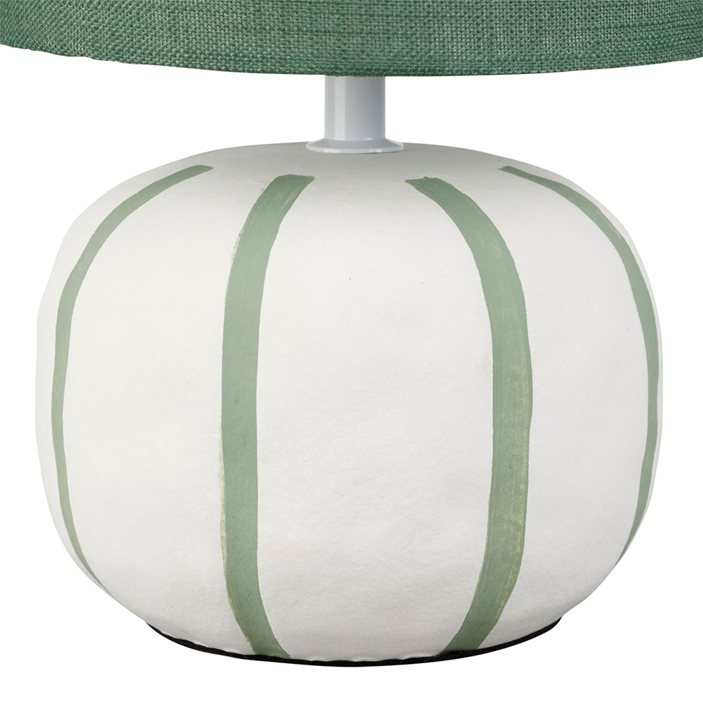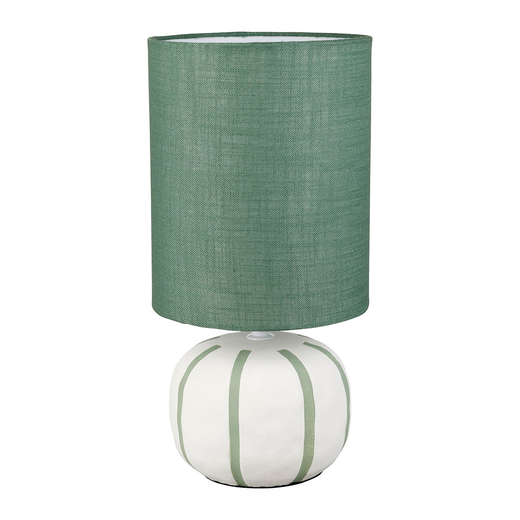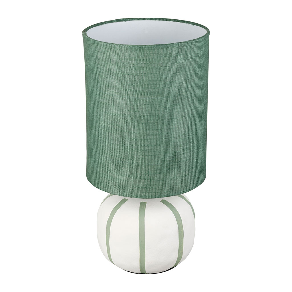 05 56 69 68 67-contact@fabriquedestyles.frLampe en lin et céramique rayée écru et vert h27cm E27 - Paese