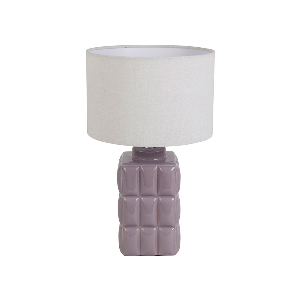 Illuminez votre espace avec charme grâce à cette lampe en céramique et lin violet de 35 cm de hauteur.