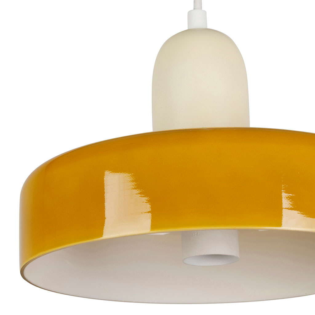 Son abat-jour en métal jaune brillant contraste joliment avec la douille écru mate, pour un effet rétro plein de caractère.