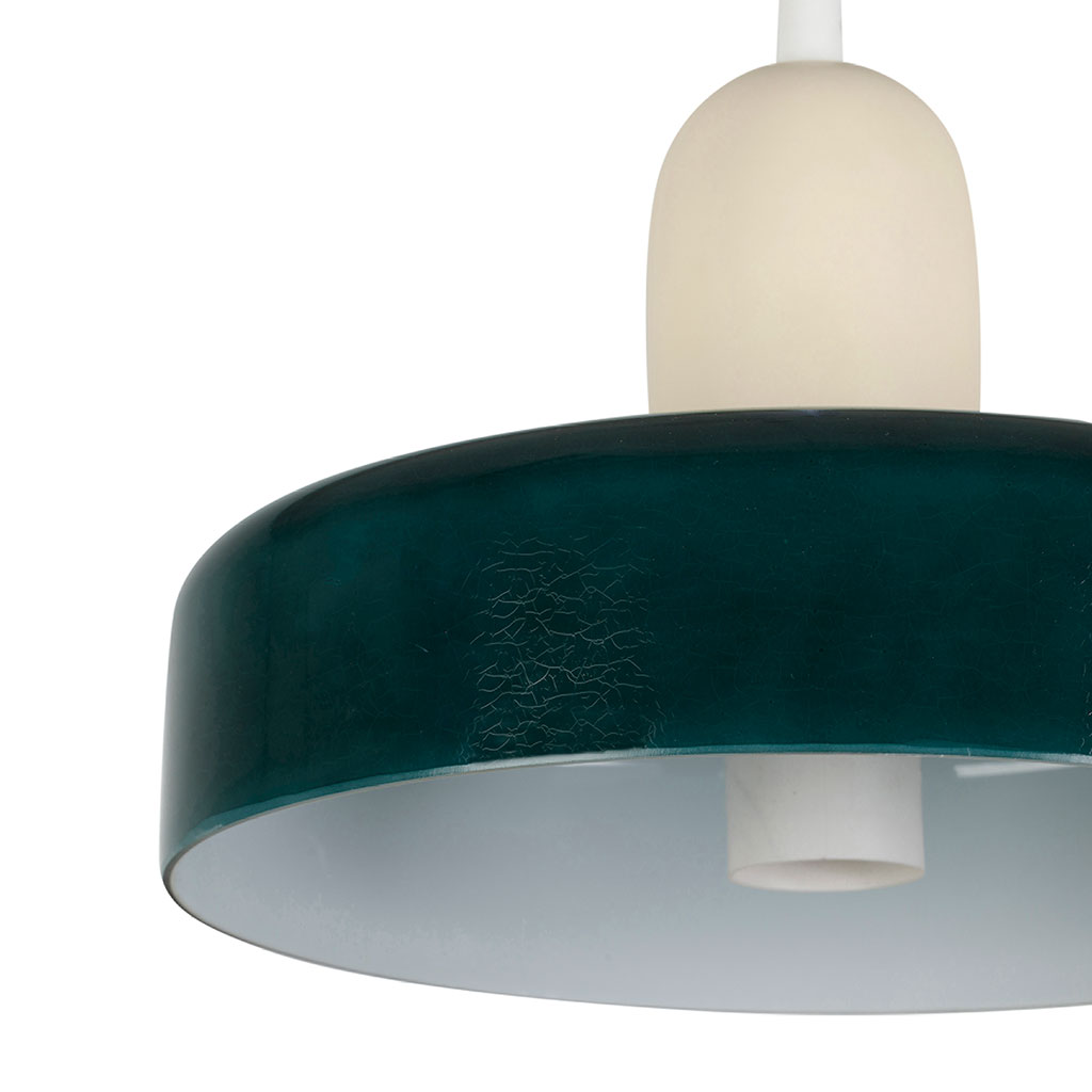 Minimaliste mais pleine de personnalité, la suspension Atelier mise sur un duo de couleurs intemporelles : vert foncé intense et écru mat.
