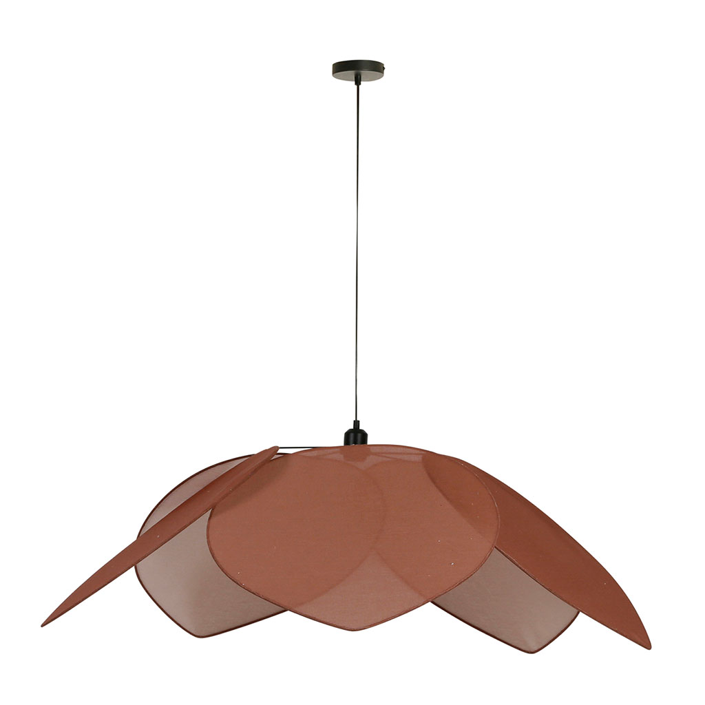 05 56 69 68 67-contact@fabriquedestyles.frSuspension tulipe en fer et lin brun d110cm E27