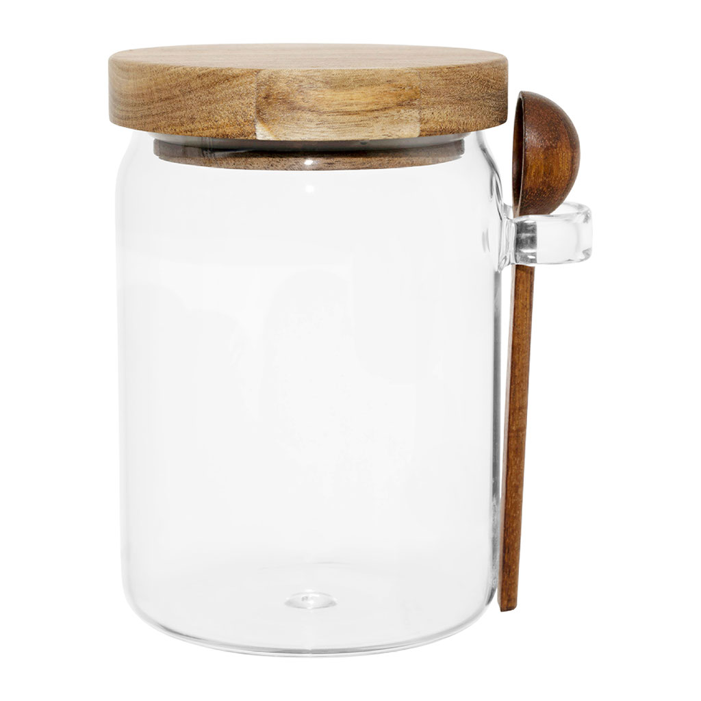 Bocal avec cuillière et couvercle en verre borosilicate et acacia 90cl - Delices