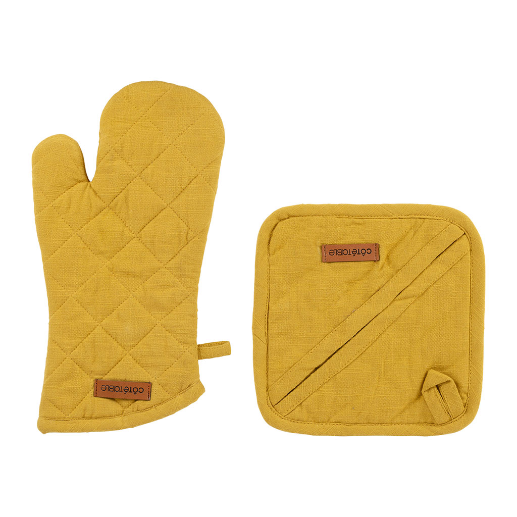 Gant et manique en coton moutarde - Cellier