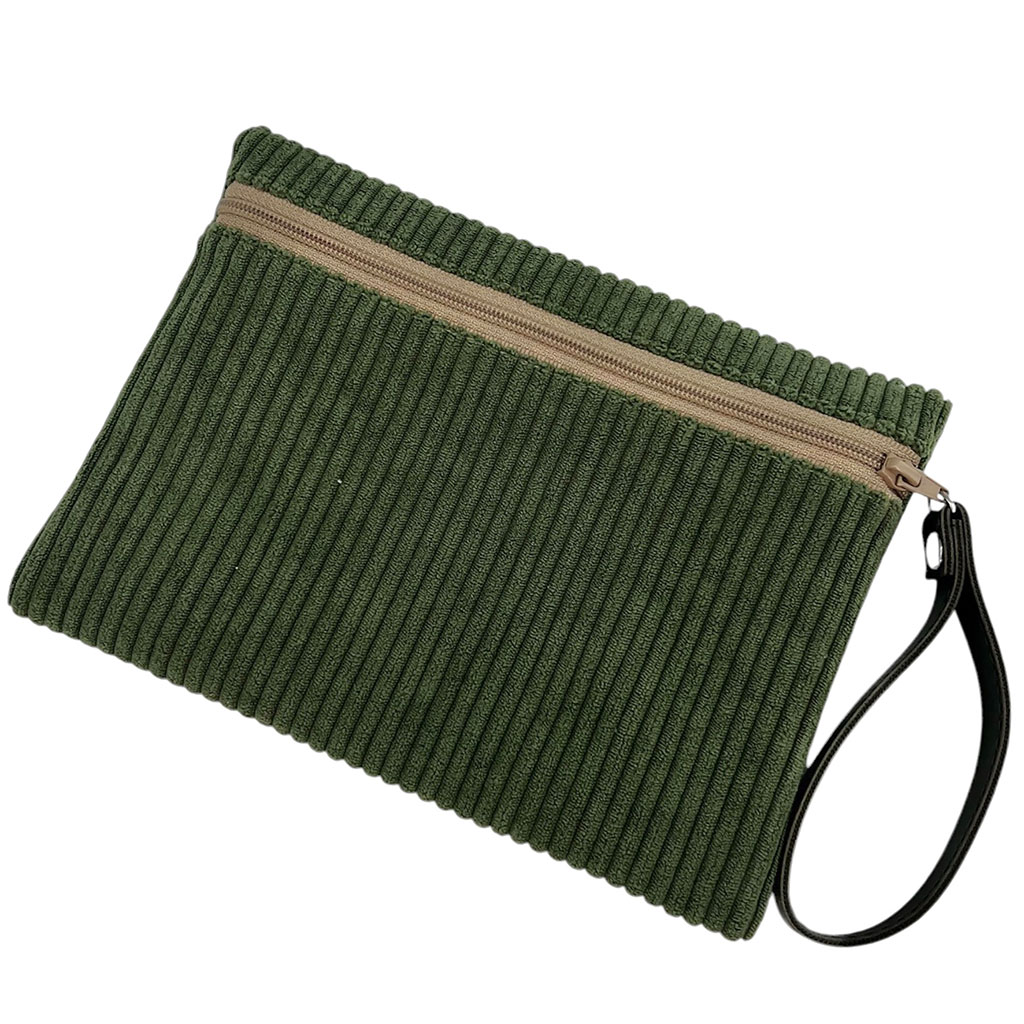 Pochette en velours kaki