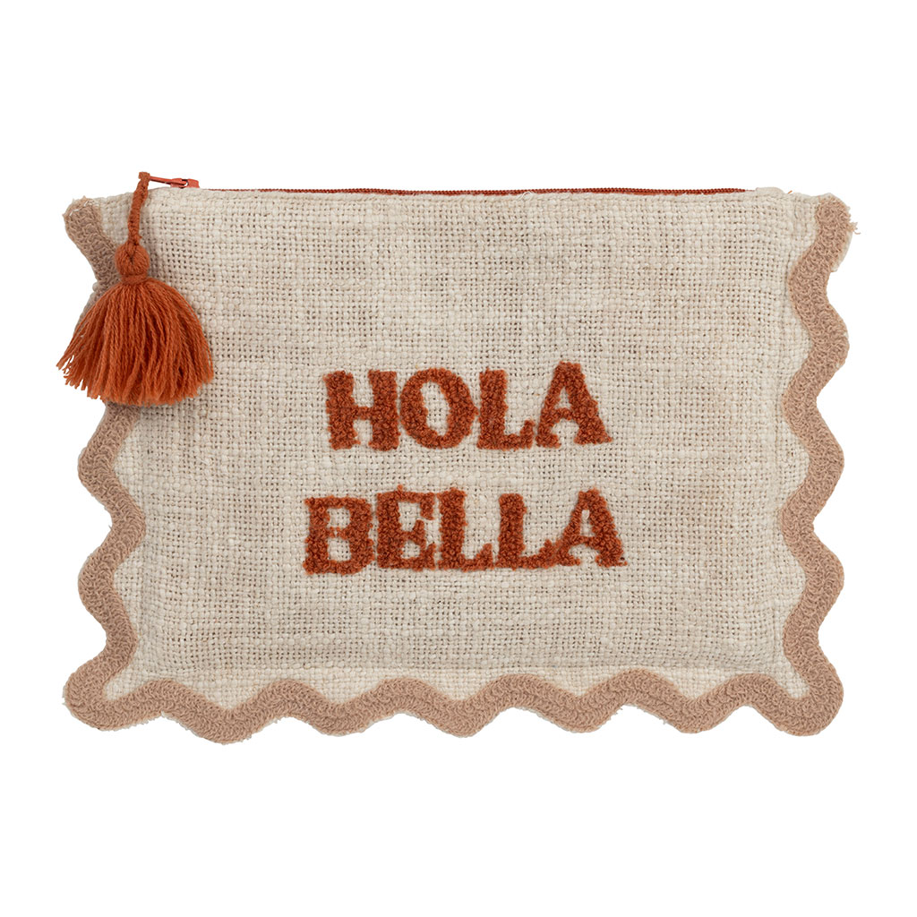 Pochette brodée hola Bella en coton terracotta - Lumi