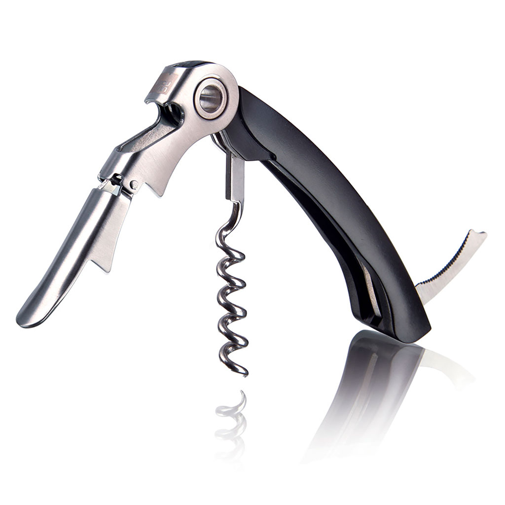Tire bouchon sommelier 2 crans en noir et argent