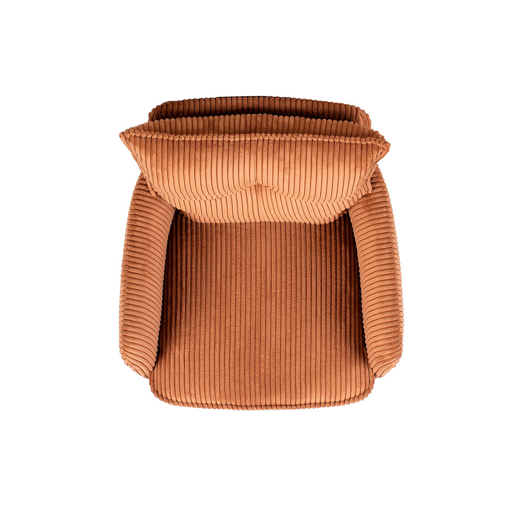 Son revêtement en velours côtelé de couleur camel ajoute une touche chaleureuse et accueillante à n'importe quelle pièce.