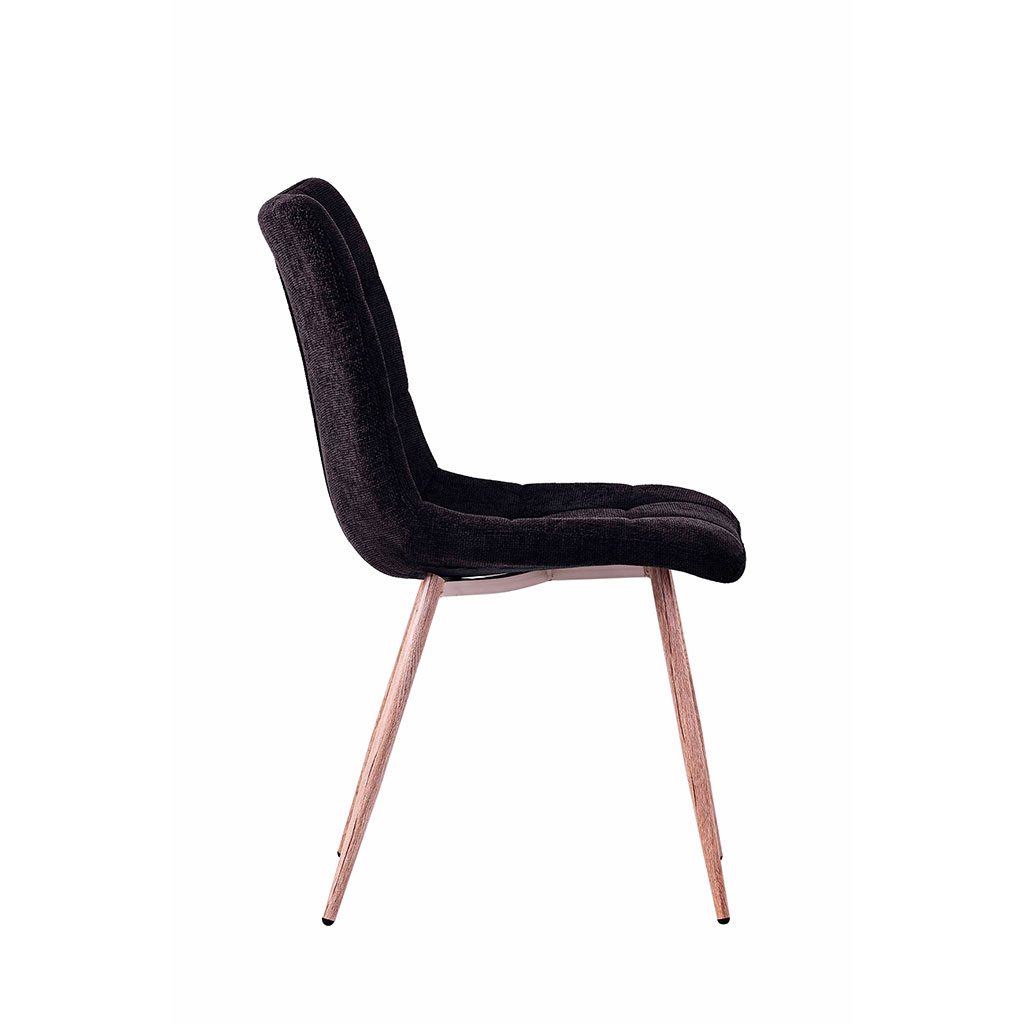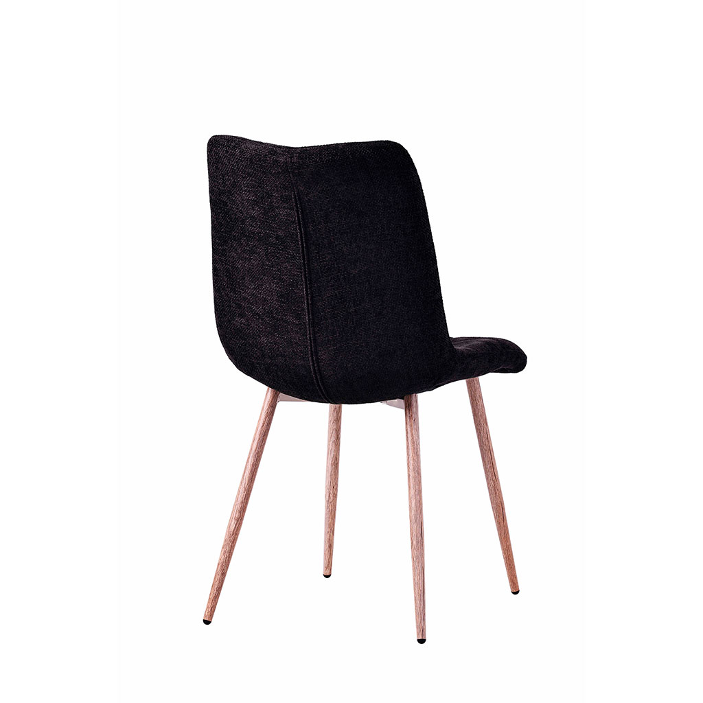 La chaise Oslo se pare d'un revêtement textile chiné aux nuances noir marron intenses.