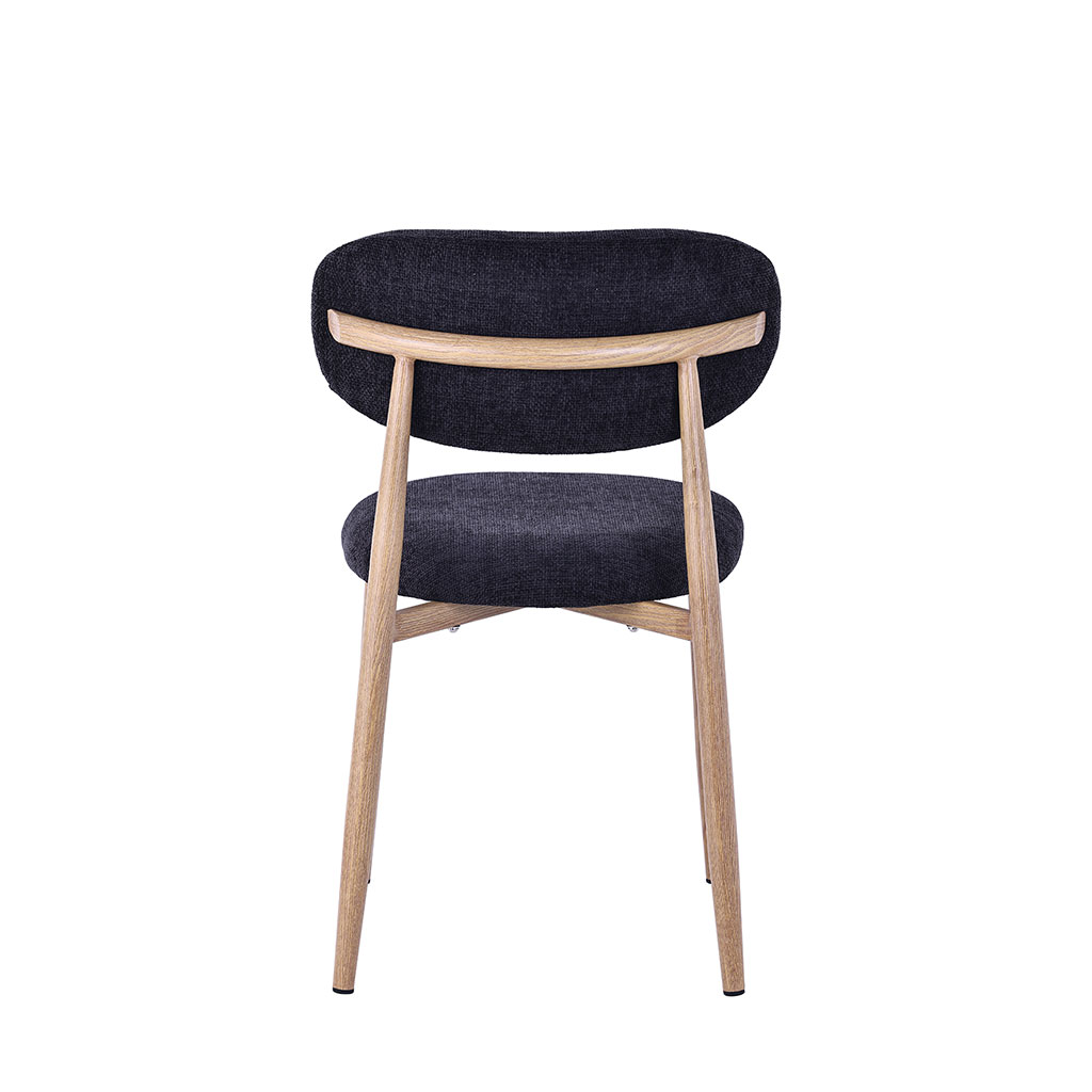 05 56 69 68 67-contact@fabriquedestyles.frChaise de salle à manger en tissu noir et pieds en métal effet bois - Copenhague