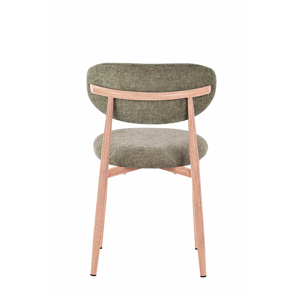 05 56 69 68 67-contact@fabriquedestyles.frChaise de salle à manger en tissu vert et pieds en métal effet chêne clair - Copenhague