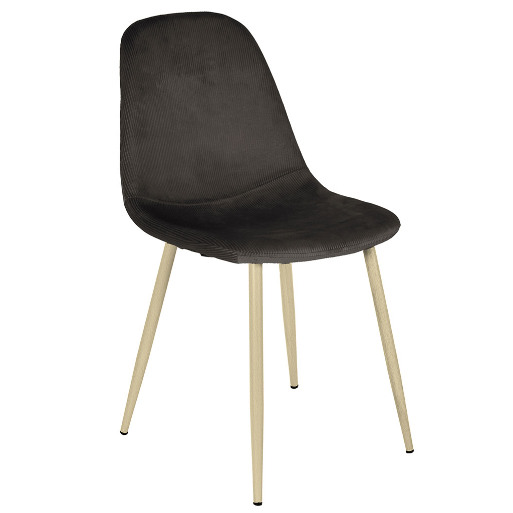 05 56 69 68 67-contact@fabriquedestyles.frChaise de salle à manger en velours côtelé gris foncé et pieds effet bois - Pauline