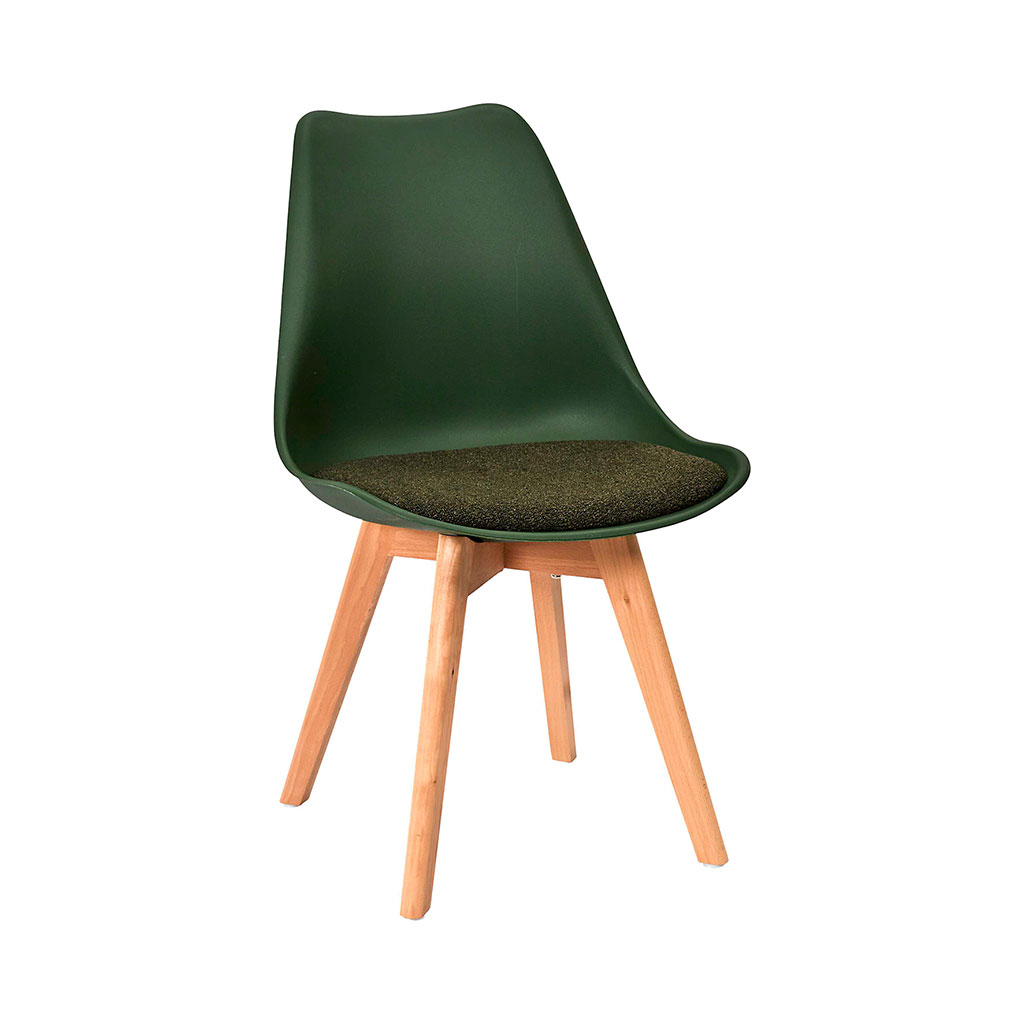 05 56 69 68 67-contact@fabriquedestyles.frChaise de salle à manger rembourrée vert sapin avec pieds bois - Emma