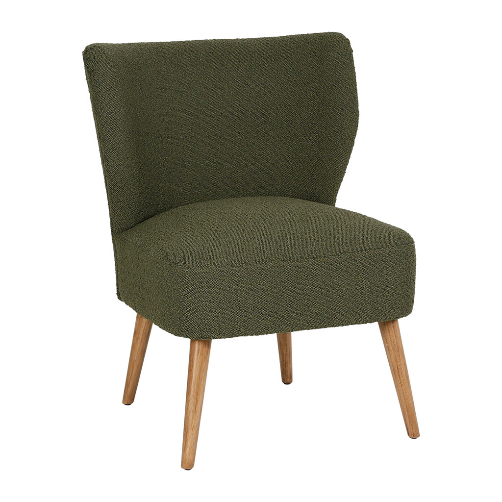 Découvrez notre fauteuil en bouclette vert Eleonor, du mobilier qui allie confort et design.
