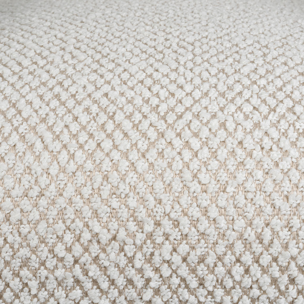 Le revêtement en tissu bouclette écru ajoute une dimension sensorielle unique, offrant une sensation douce et agréable au toucher.