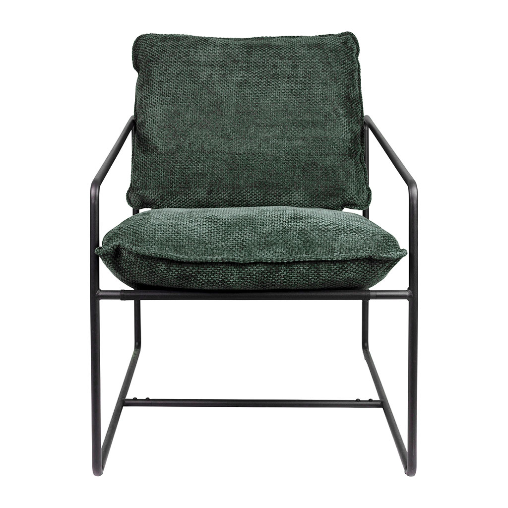 Ce fauteuil combine la robustesse d'une structure en fer avec la chaleur et le charme d'un tissu émeraude.