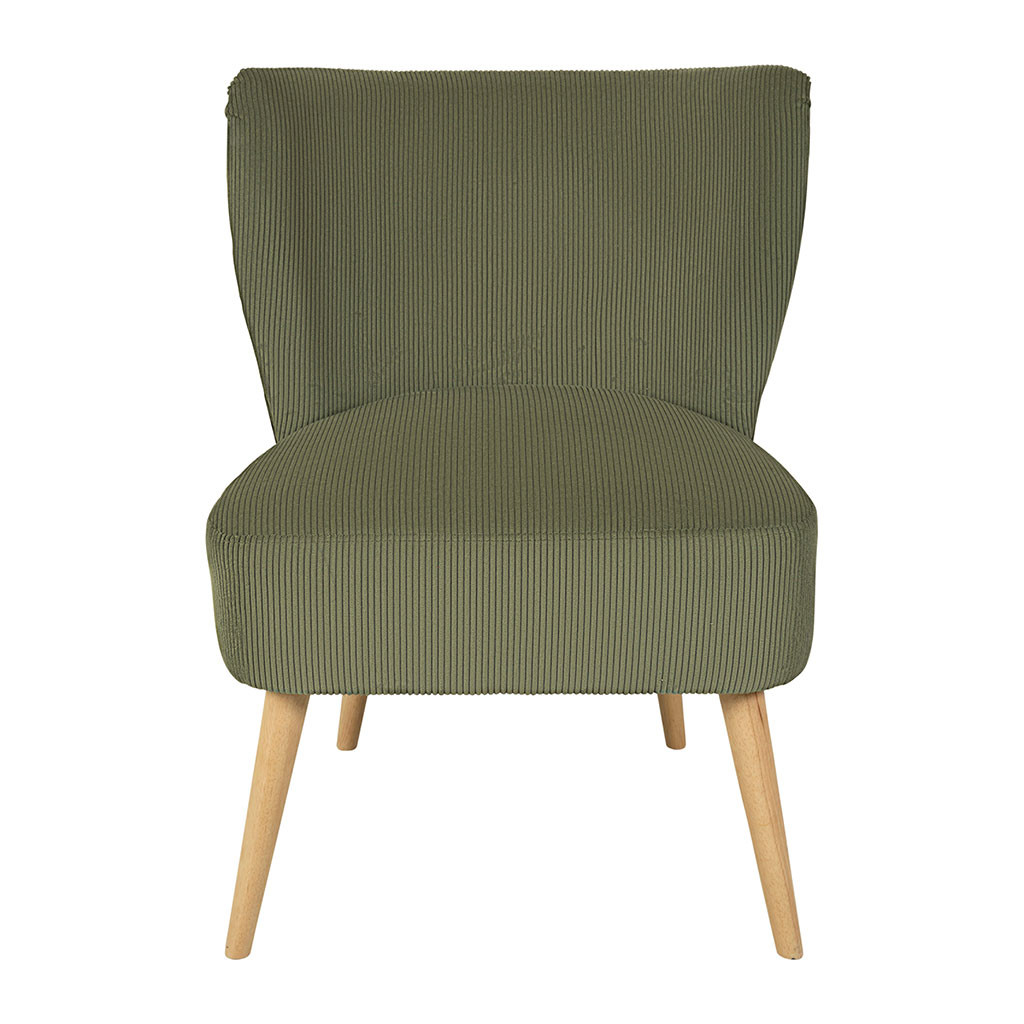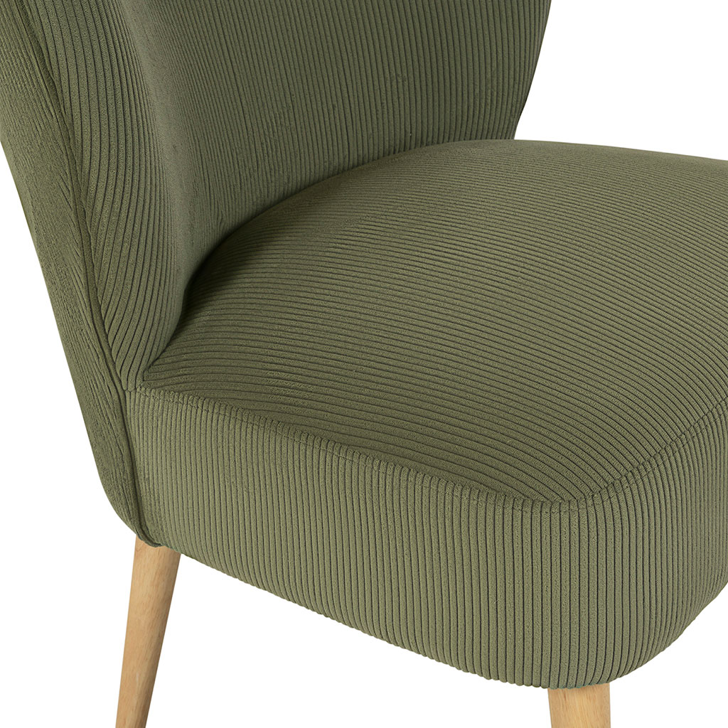 Ajoutez une touche de style et de confort à votre intérieur avec le fauteuil en velours côtelé kaki Eleonor.