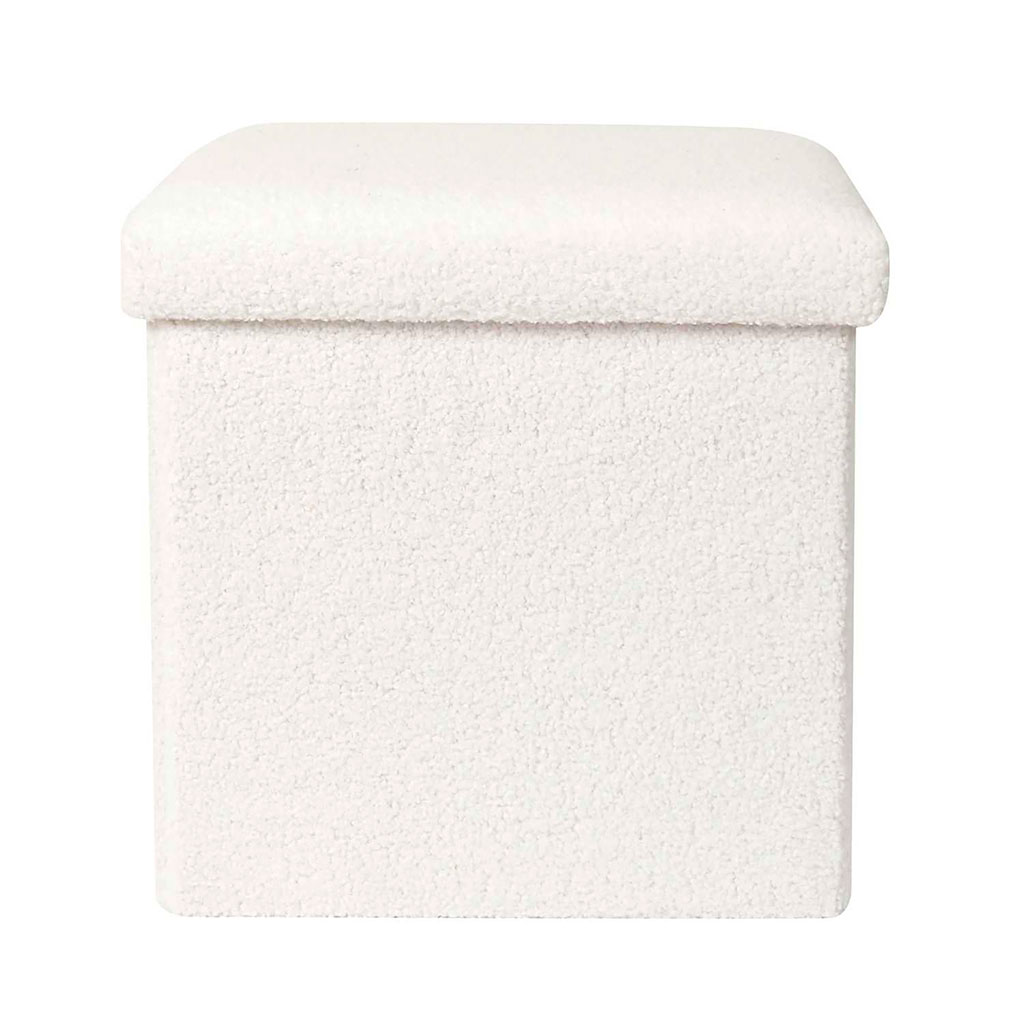 Ce pouf coffre pliable en tissu bouclette blanc est la solution idéale pour gagner de la place sans sacrifier le style.