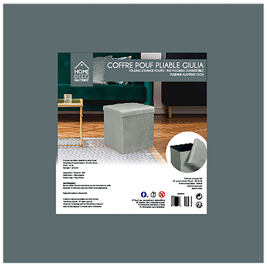 05 56 69 68 67-contact@fabriquedestyles.frPouf coffre pliable en velours côtelé gris - Julia