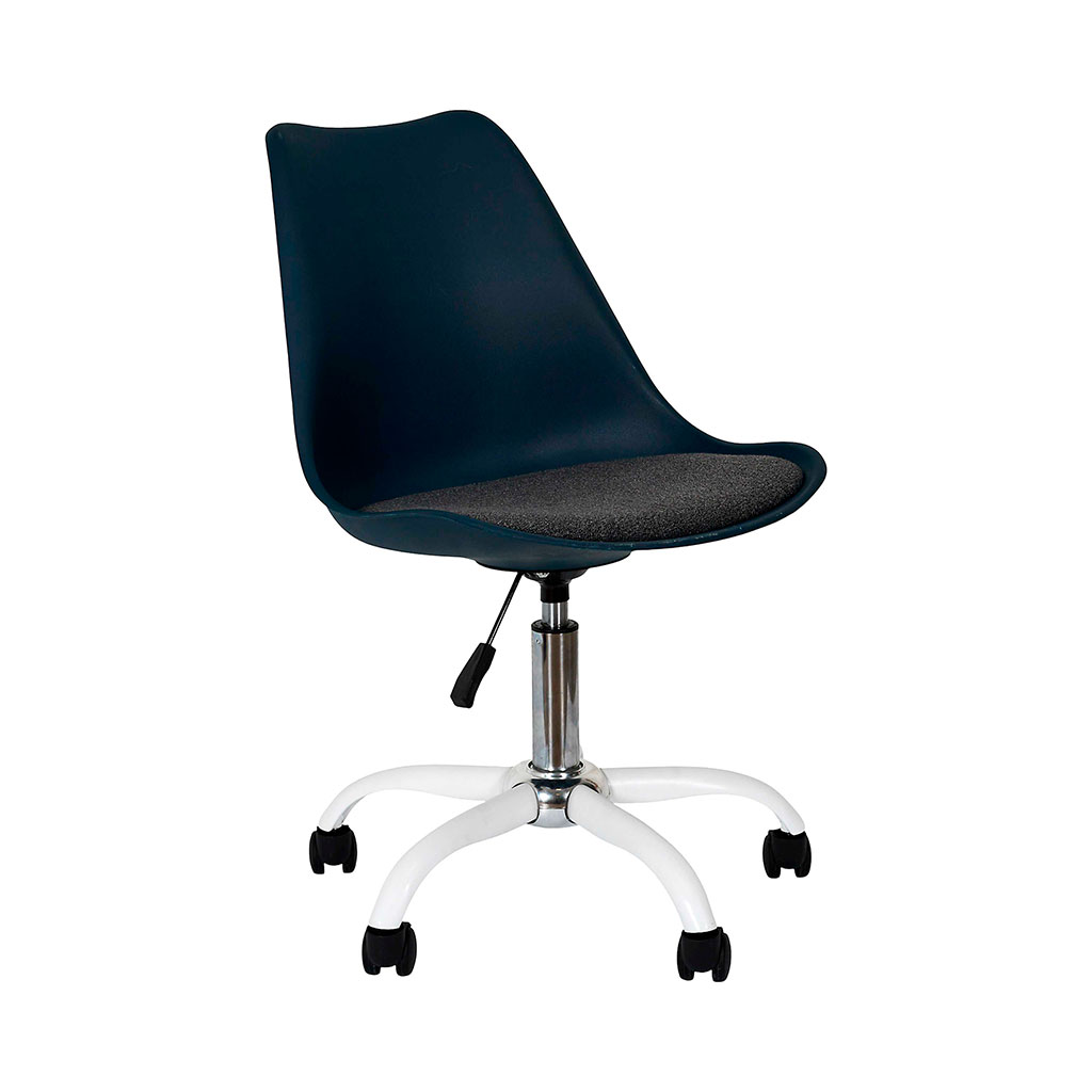 05 56 69 68 67-contact@fabriquedestyles.frChaise de bureau à roulettes en bois et métal bleu marine - Emma