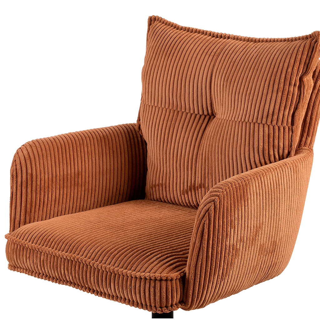 Transformez votre espace de travail avec cette chaise de bureau à roulettes en velours côtelé caramel.
