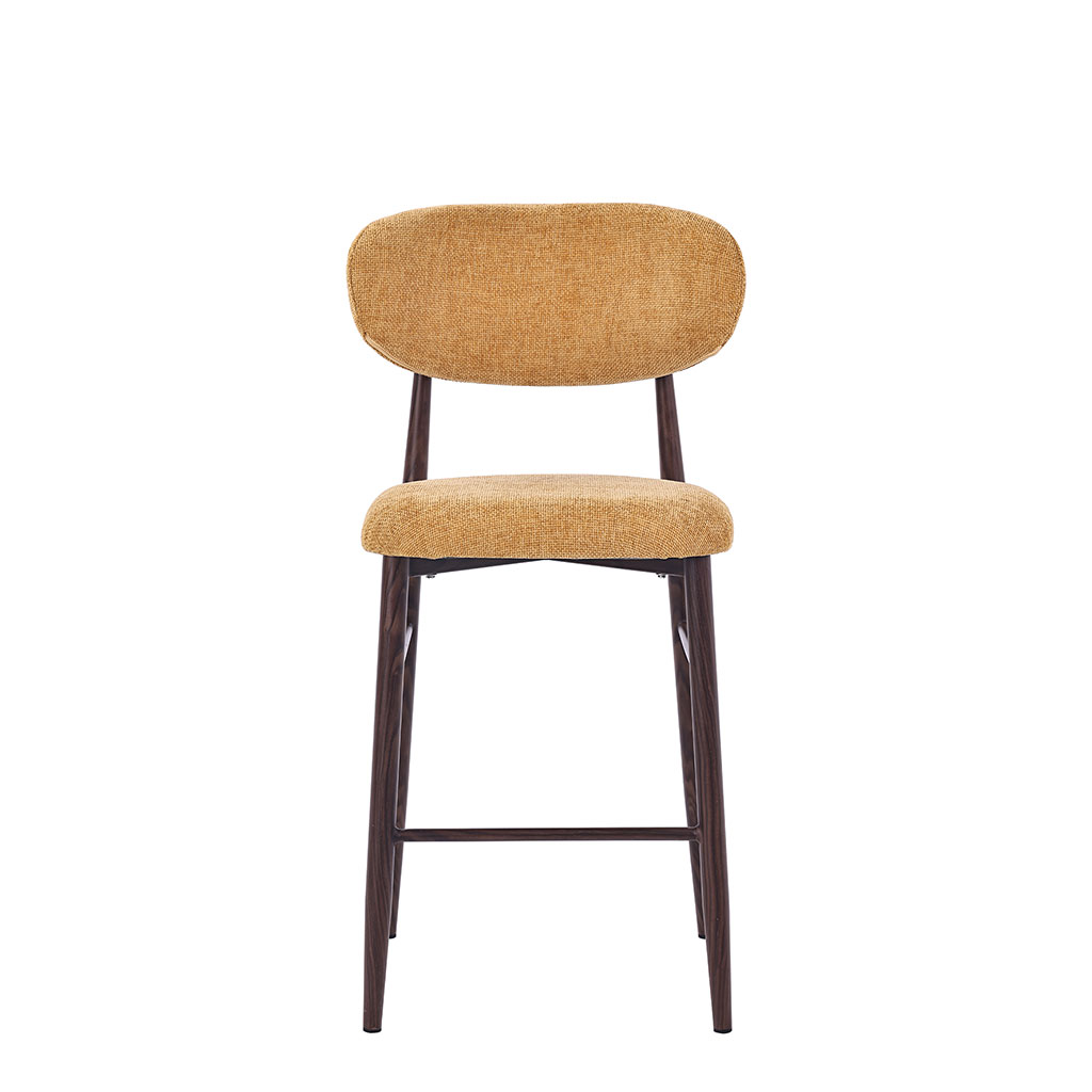 05 56 69 68 67-contact@fabriquedestyles.frChaise de bar en tissu jaune et pieds en métal effet noyer foncé - Copenhague