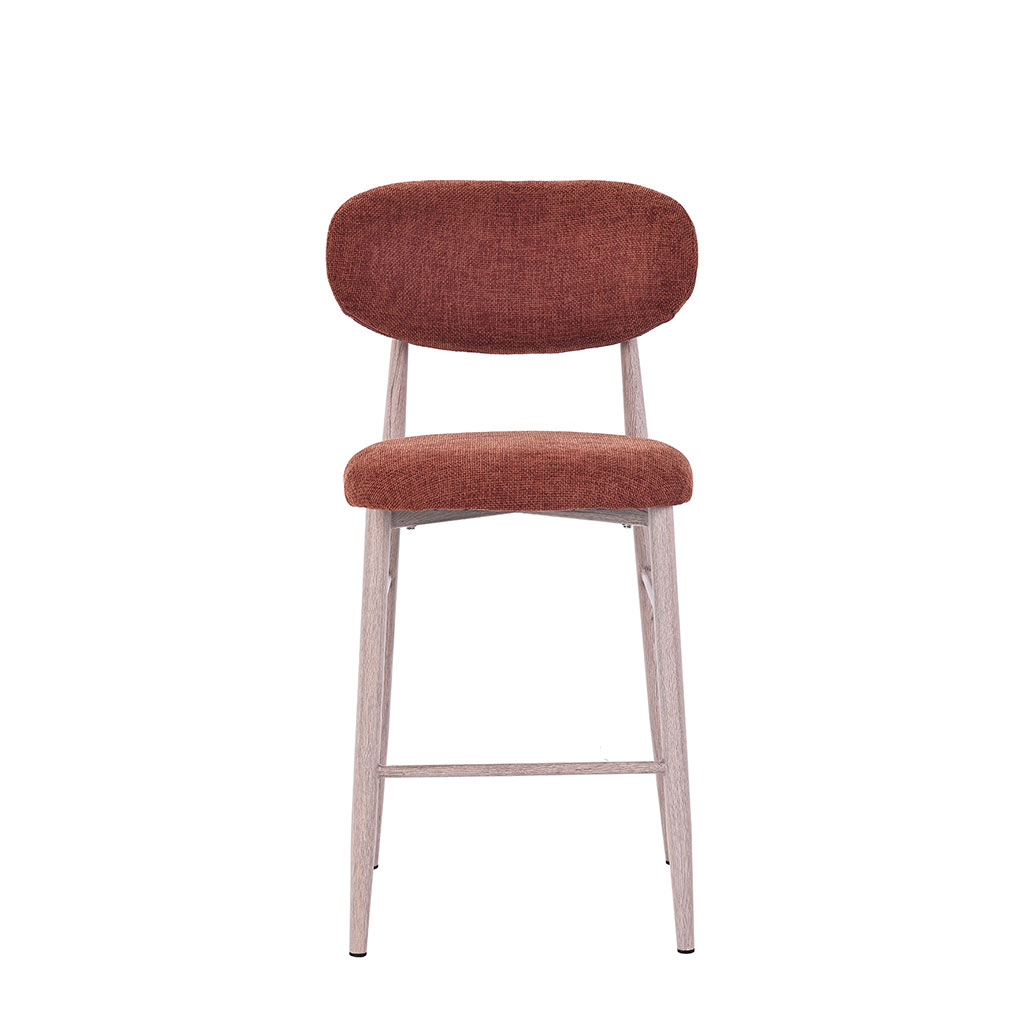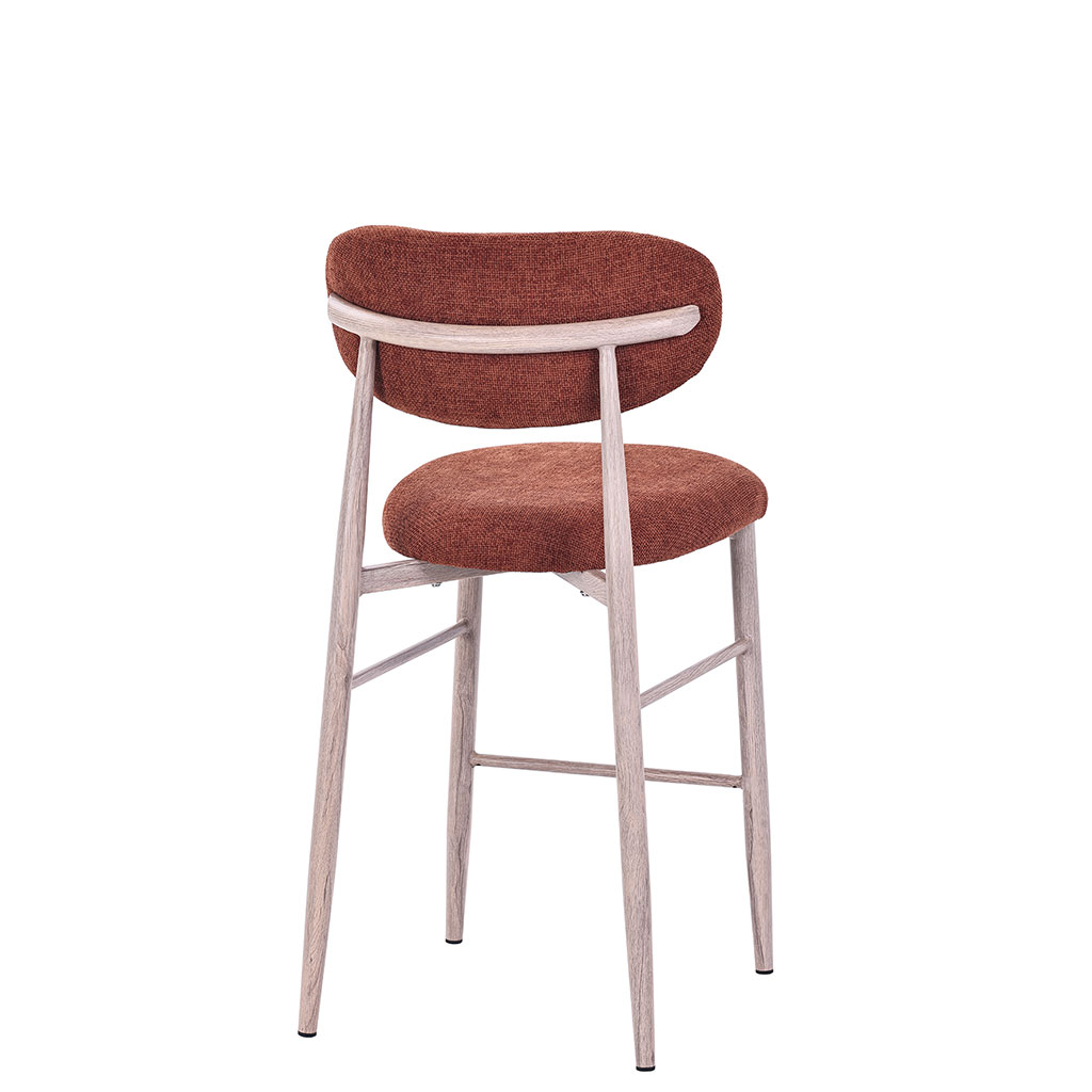 05 56 69 68 67-contact@fabriquedestyles.frChaise de bar en tissu terracotta et pieds en métal effet chêne clair - Copenhague