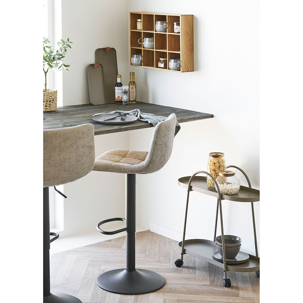 05 56 69 68 67-contact@fabriquedestyles.frChaise de bar pivotante réglable h61/82cm en tissu gris - Mikel