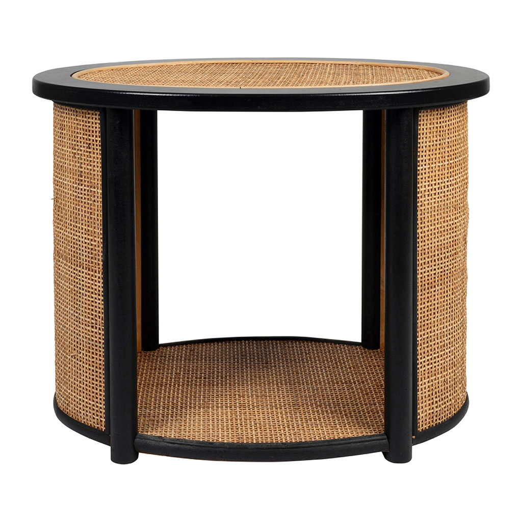 05 56 69 68 67-contact@fabriquedestyles.frTable d'appoint en rotin et sapin naturel et noir - Balamea