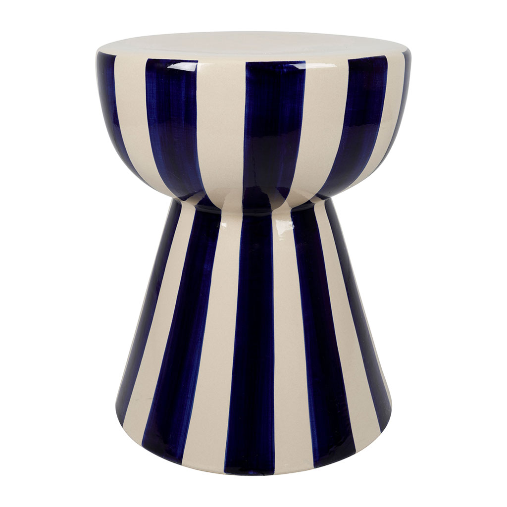 05 56 69 68 67-contact@fabriquedestyles.frTable d'appoint ronde en grès rayé indigo et blanc d33cm - Artist
