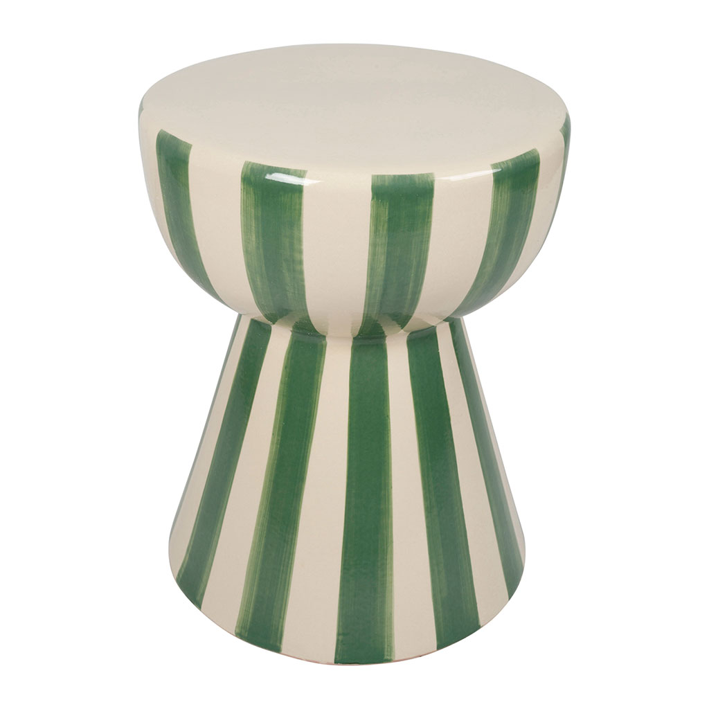 05 56 69 68 67-contact@fabriquedestyles.frTable d'appoint ronde en grès rayé vert et blanc d33cm - Artist