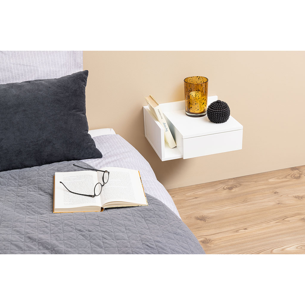 Fixée au mur, cette table de nuit libère de l'espace autour de votre lit, facilitant le nettoyage et créant une sensation de légèreté dans la pièce.