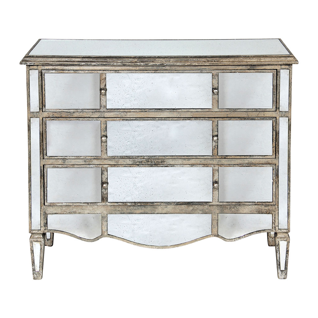 05 56 69 68 67-contact@fabriquedestyles.frCommode en bois miroir patine 3 tiroirs H87cm