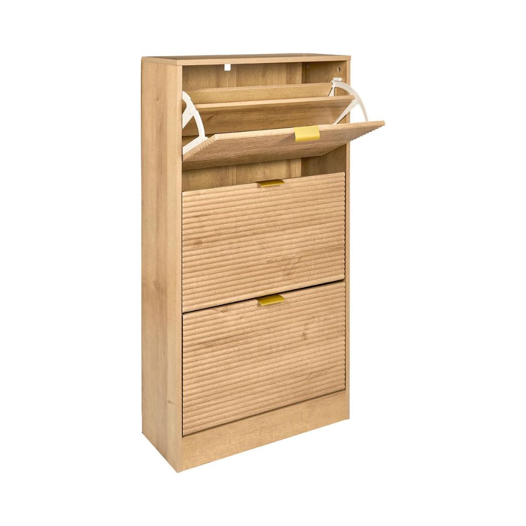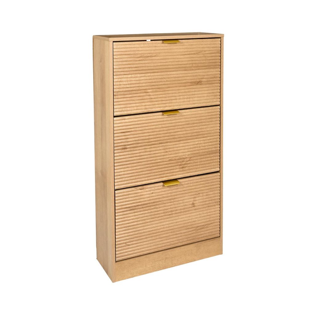 Le meuble à chaussures Tiphaine 3 portes allie rangement malin et look chaleureux.