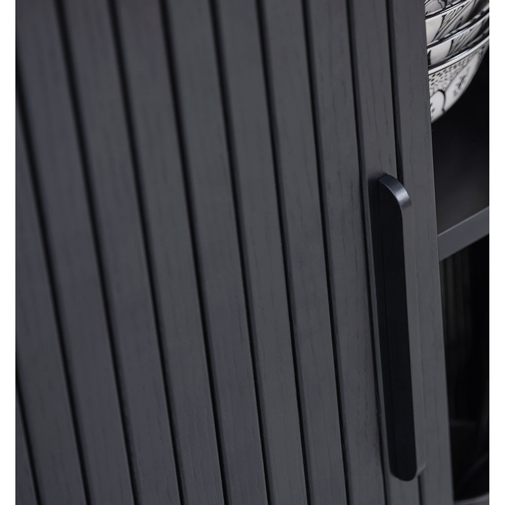 Découvrez le meuble TV Nola en placage chêne noir, d'une longueur de 123 cm.
