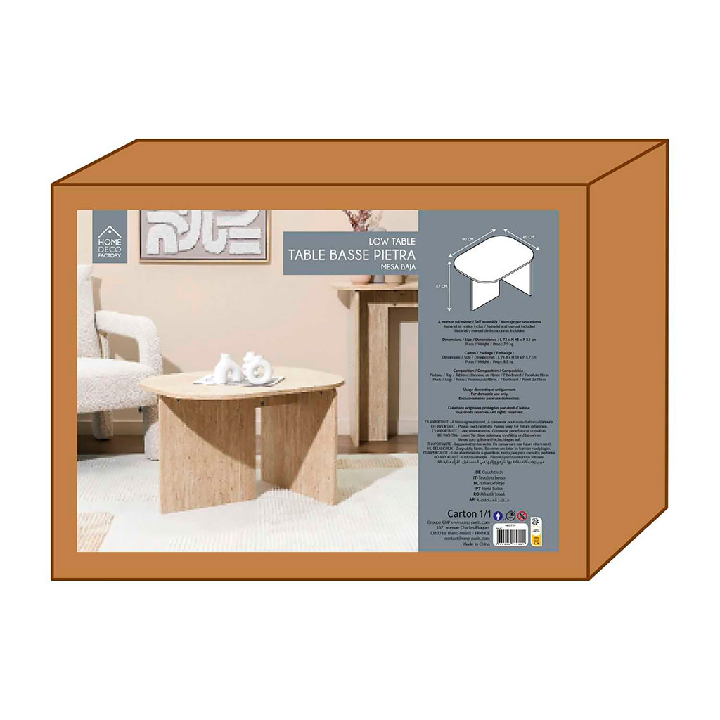05 56 69 68 67-contact@fabriquedestyles.frTable basse en bois clair 72x53cm - Pietra