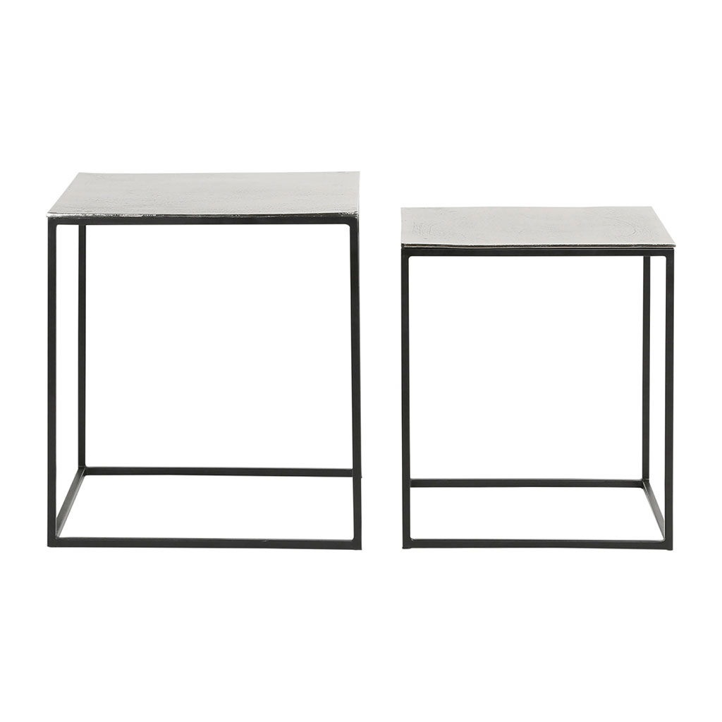 05 56 69 68 67-contact@fabriquedestyles.frTable basse gigogne carrée (lot de 2) en aluminium et fer argenté - Felia