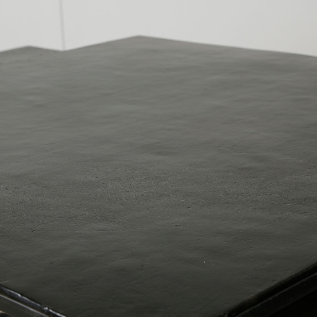 Le plateau en aluminium martelé, magnifiés par une finition noire obtenue grâce à la galvanoplastie, reflète subtilement la lumière, apportant une ambiance à la fois sophistiquée et chaleureuse à votre espace de vie.
