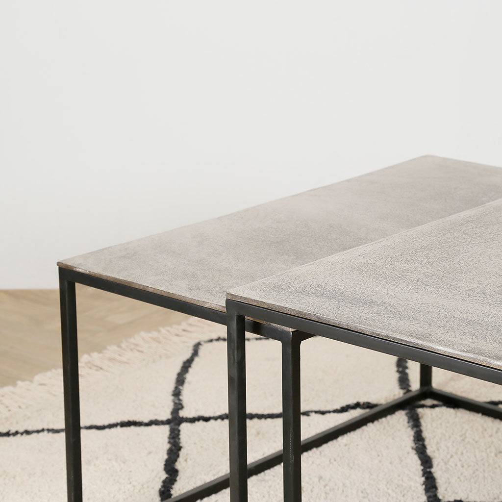 Apportez une touche moderne à votre salon avec la table basse gigogne rectangulaire (lot de 3) en aluminium et fer argenté Felia.