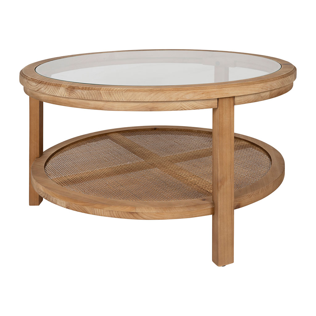 05 56 69 68 67-contact@fabriquedestyles.frTable basse ronde en sapin naturel et verre trempé d75cm - Firmin