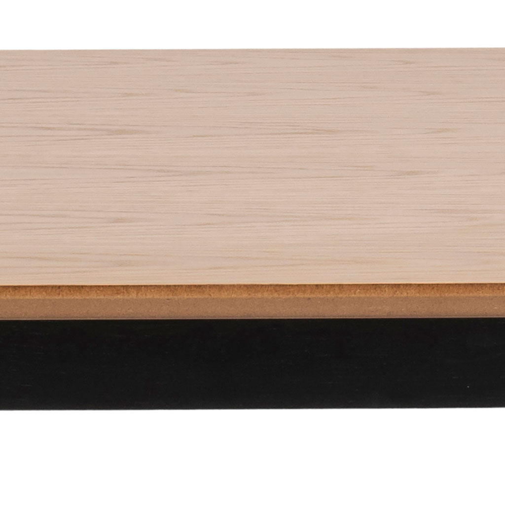 Les lignes courbes et les coins légèrement adoucis confèrent à la table de salle à manger un attrait classique, tandis que les pieds peints en noir ajoutent une touche saisissante.