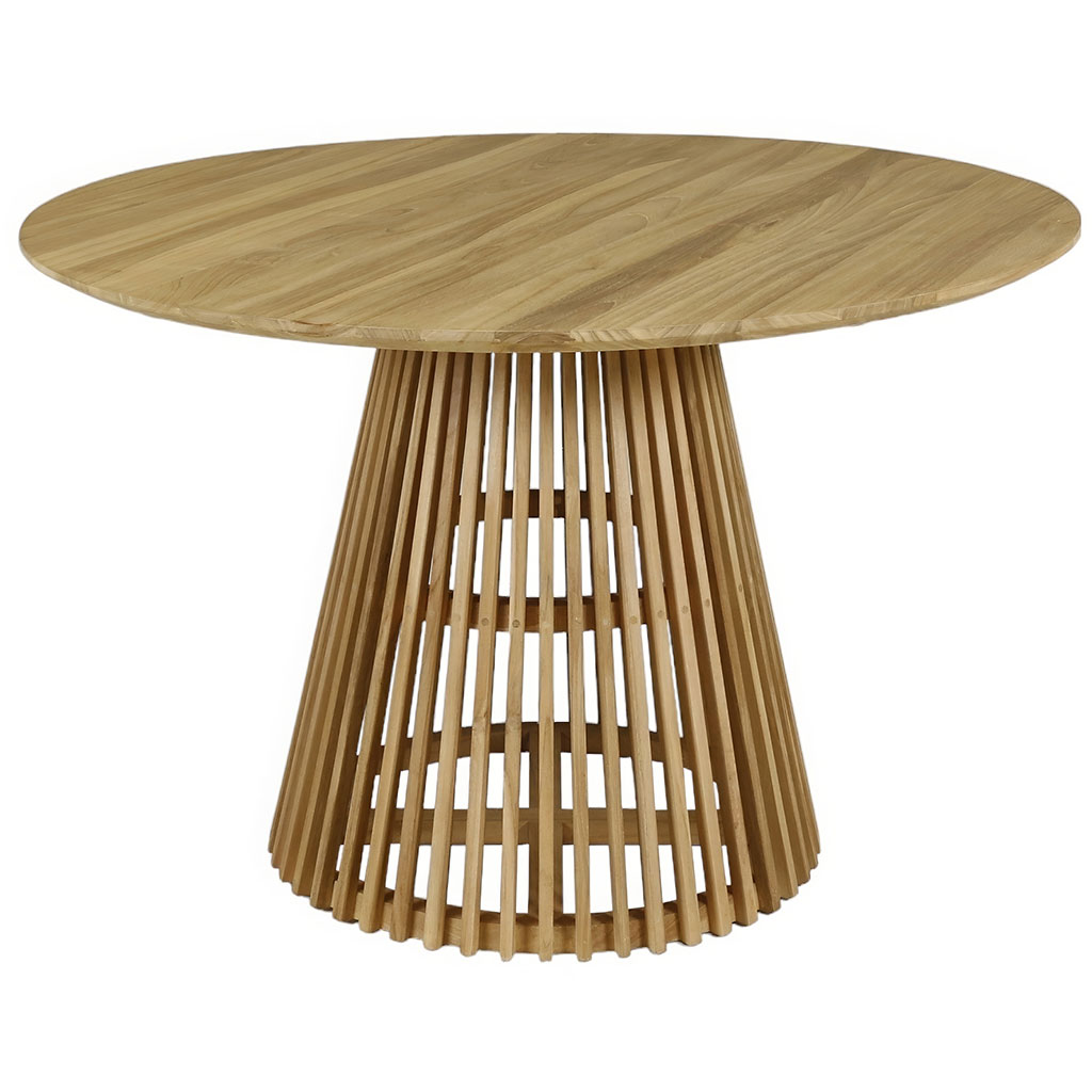 Découvrez notre table à manger ronde Kamala en teck naturel !