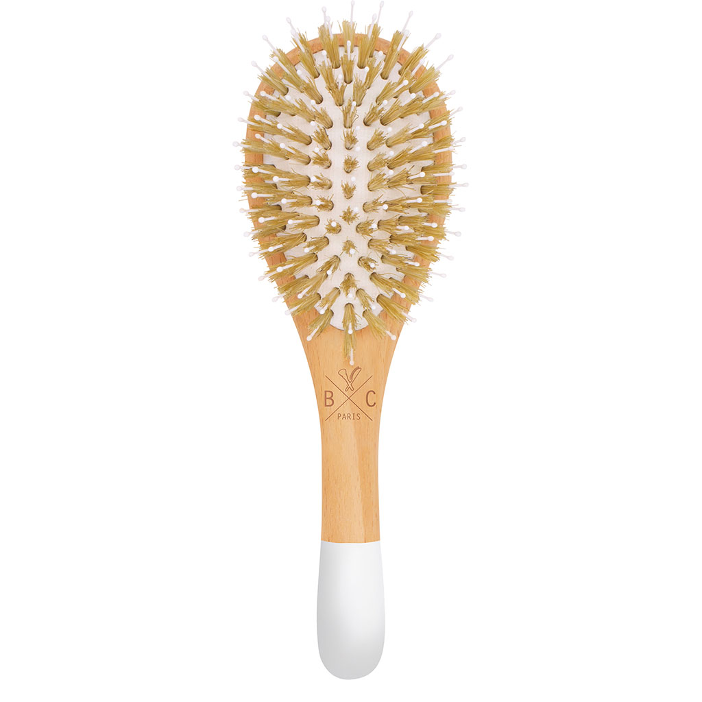 L’association des picots nylon et des soies de sanglier permet de démêler en douceur tout en lissant les cheveux.