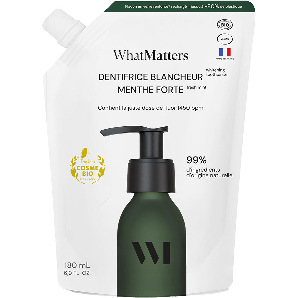 Développée avec des dentistes, sa formule suit les recommandations de l'union française pour la santé Bucco-dentaire et son flacon en verre renforcé® est 100% rechargeable.