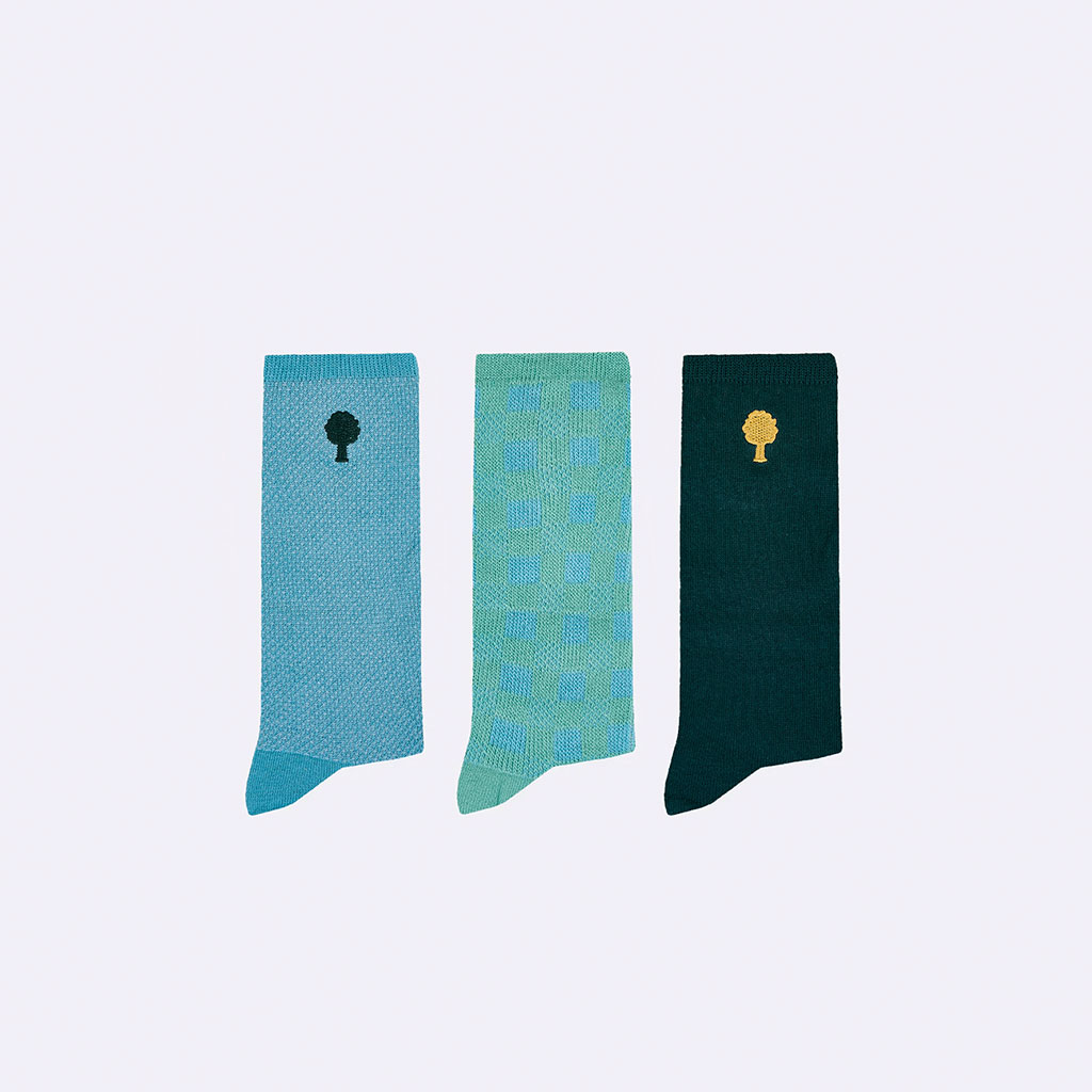 Ce pack de 3 paires de chaussettes FAGUO est réalisé dans un fil en partie recyclé. Mi-hautes, elles ont été pensées par notre studio pour dynamiser une tenue.
