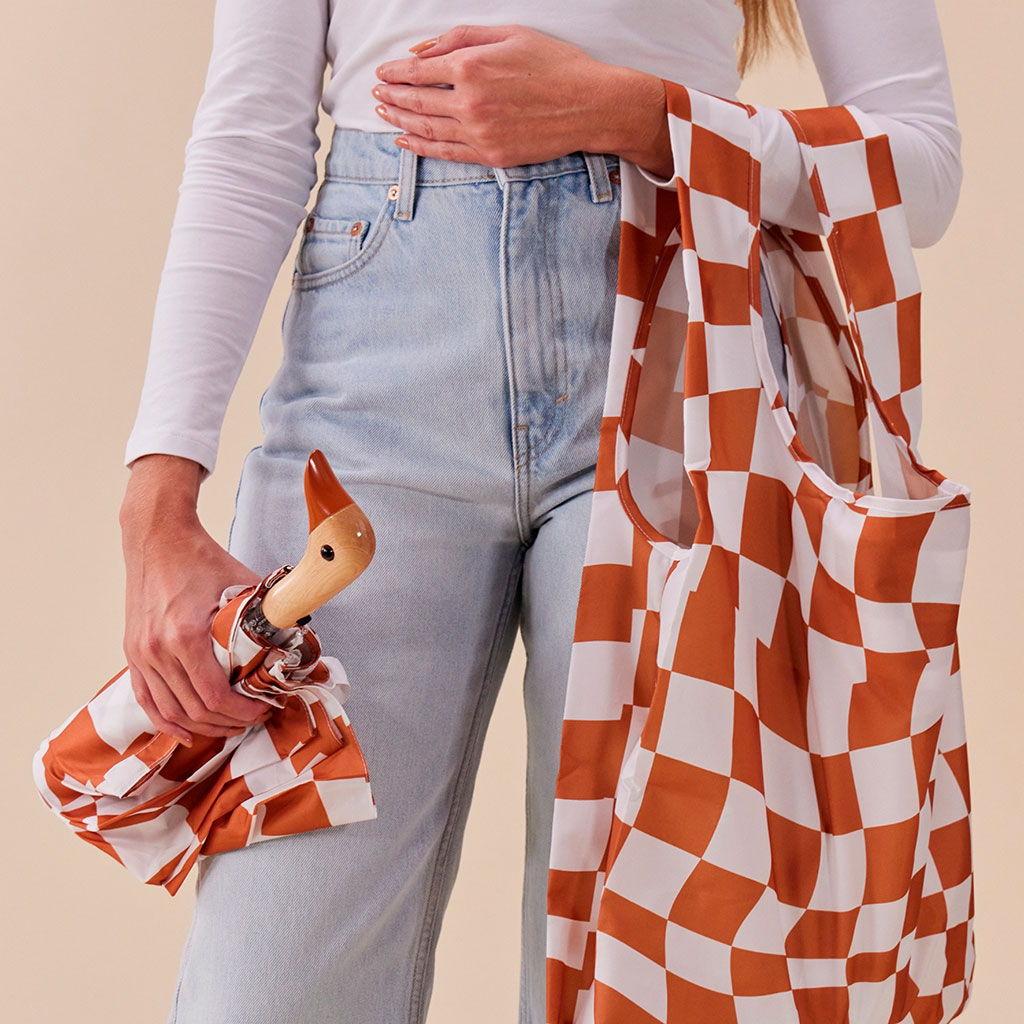 Découvrez notre parapluie compact à motif “duck peanut butter checkers” de la collection Accessoires et loisirs, parfait pour ceux qui aiment s'évader même sous la pluie.