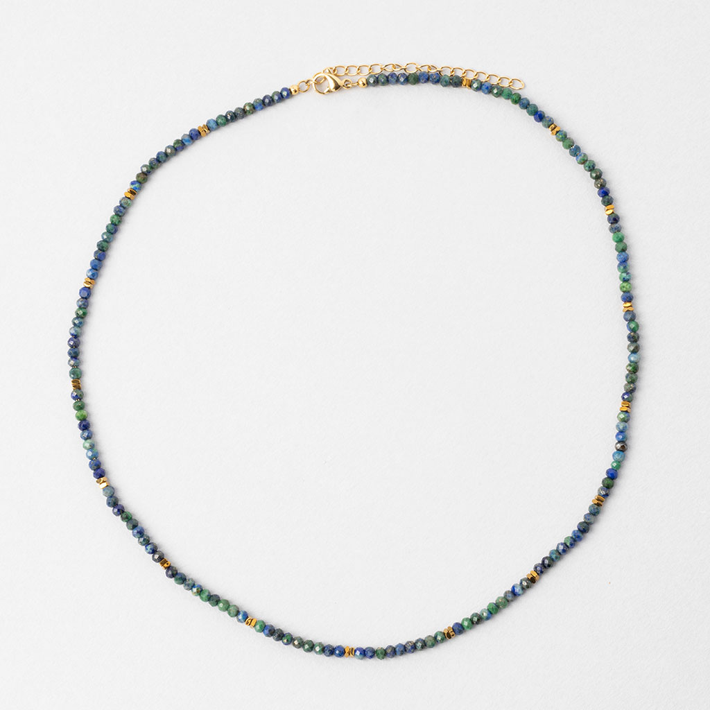 05 56 69 68 67-contact@fabriquedestyles.frCollier en acier inoxydable bleu et vert l40cm