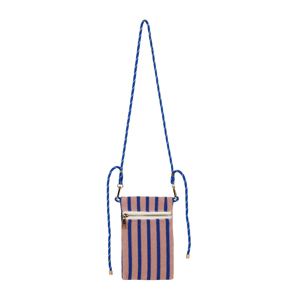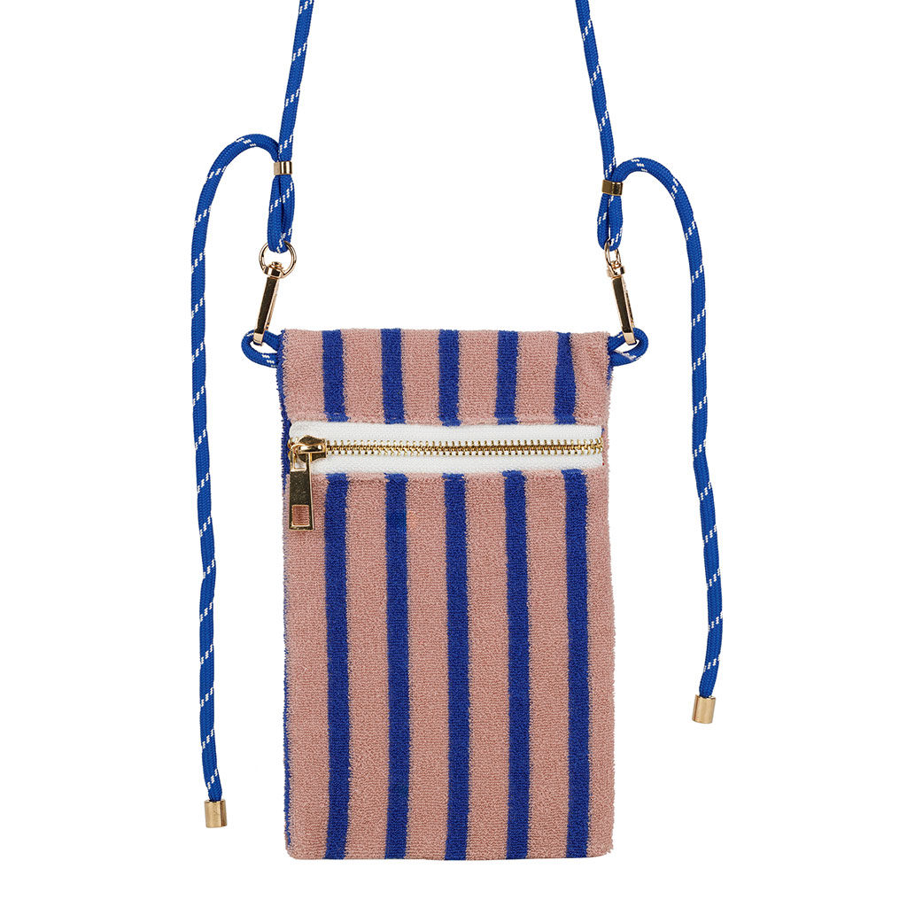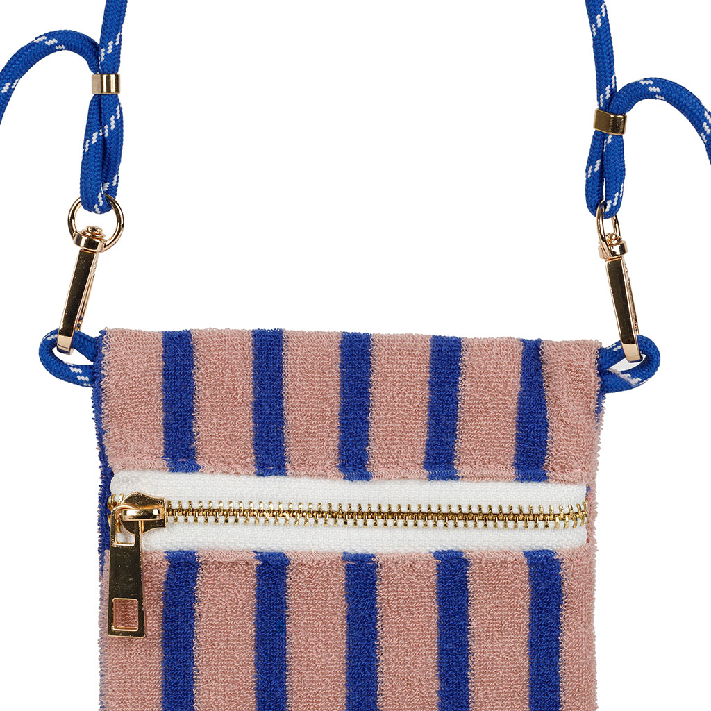 05 56 69 68 67-contact@fabriquedestyles.frPochette en coton rayé bleu et violet avec lanière bleue - Plouf&Sun