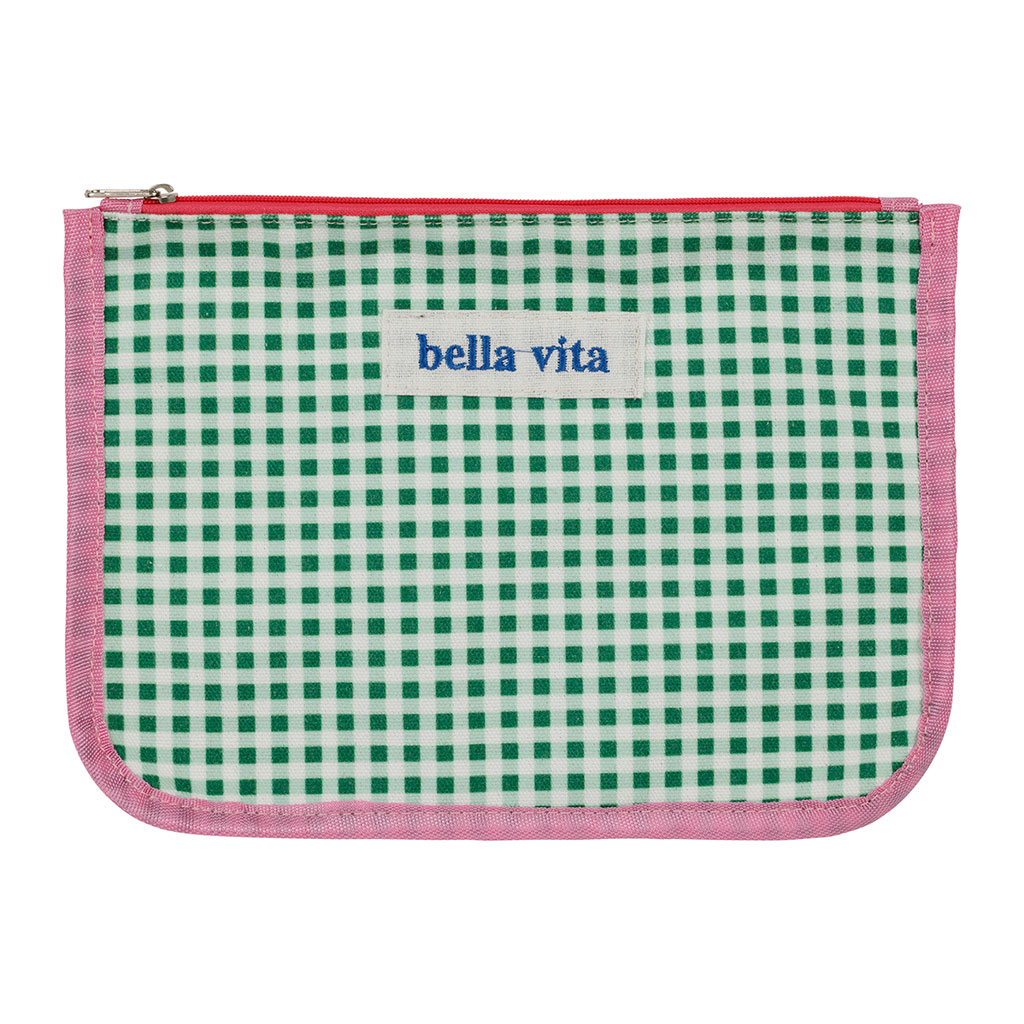 Découvrez notre pochette aux nuances joyeuses de vert et de rose, idéale pour accompagner toutes vos aventures du quotidien.