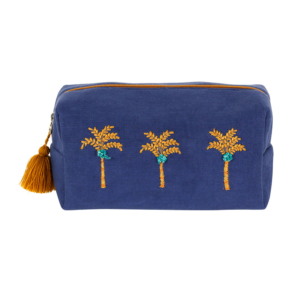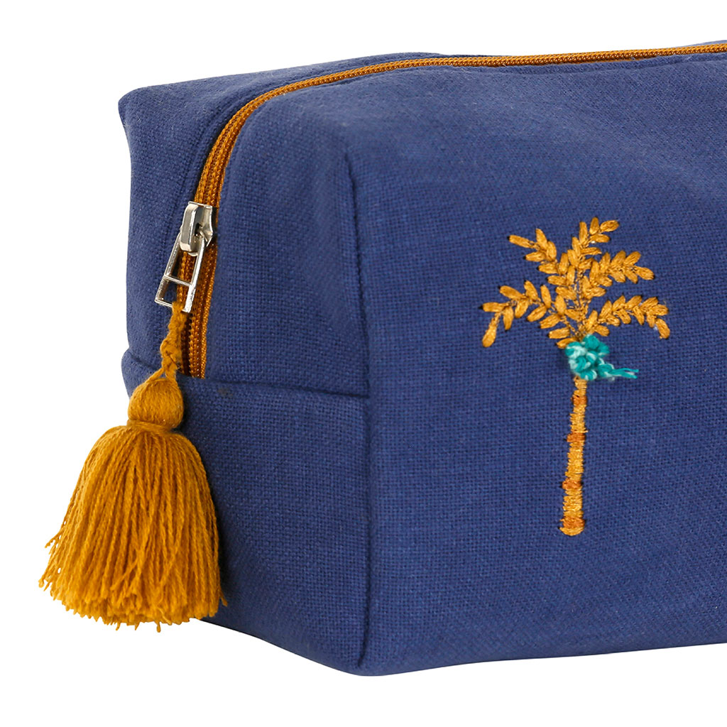 05 56 69 68 67-contact@fabriquedestyles.frTrousse de toilette en coton et polyester indigo palmier - Mocoa
