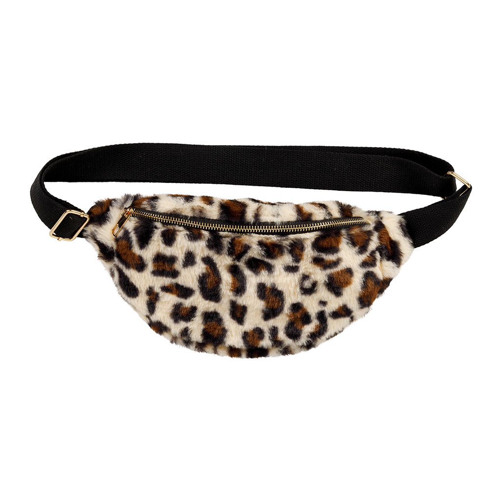 Cette banane en fausse fourrure léopard combine avec audace fonctionnalité et tendance.
